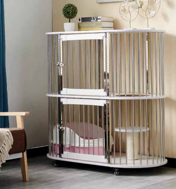 Equipped with wheels for easy movement, the “Feline Haven” is both a practical and attractive piece. It not only serves as a secure home for your feline friend but also doubles as a contemporary side table, making it a dual-purpose addition to any modern living space. Treat your cat to the luxury they deserve with this exquisite and functional cat house.