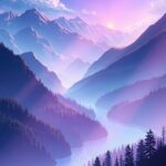 Bathed in ethereal purples and soft blues, this surreal valley stretches endlessly between layered mountain ridges.